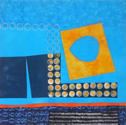 My objective for the three days was to make lots of stamped patterns on cotton, first white paint on black and then black paint on white. I hope to incorporate some of this drama into future art quilts.